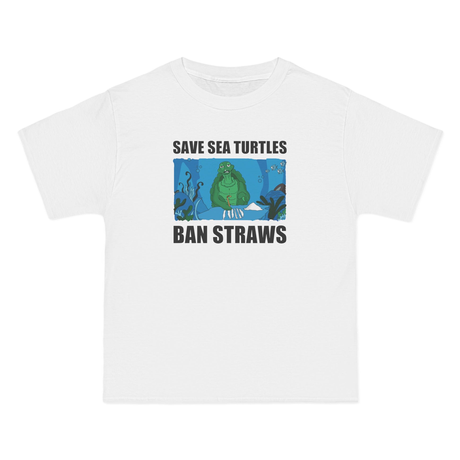 Save Sea Turtles. Ban Straws - Men's Heavyweight T-Shirt